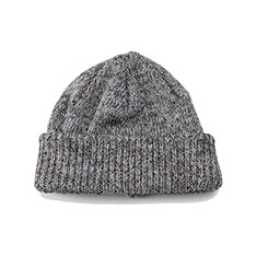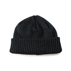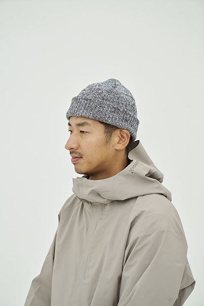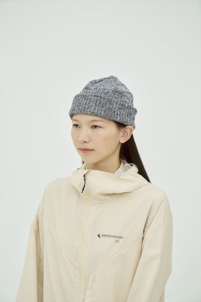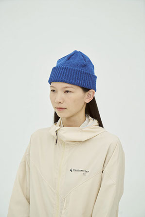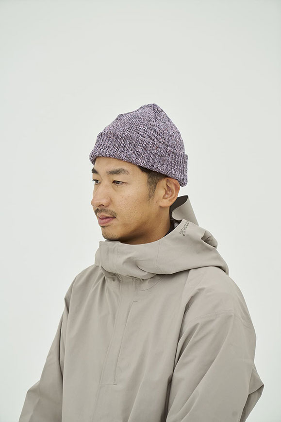 ドライタッチな質感と、もちっとした柔らかさを併せ持つニットキャップ。使用済みペットボトルを再生したリサイクルポリエステル糸を使用し、表面にはわずかなムラ感や奥行きのある色合いを表現しました。三つ折りにも対応する長めの折り返しと、すっきりとした6枚ハギのフォルムで、日常に取り入れやすいデザインに仕上げています。