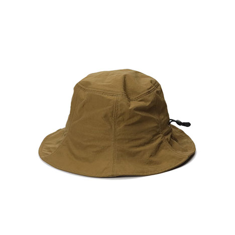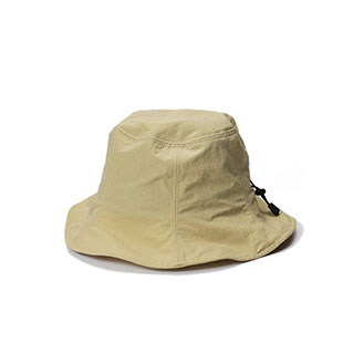 撥水加工を施したリサイクルナイロン素材を使用した、パッカブル仕様のハット。程よい深さのクラウンが安定感のある被り心地を生み、タウンユースからアウトドアまで幅広く対応します。裏地には通気性に優れたメッシュ素材を採用し、機能性にも配慮。付属のミニサコッシュには着脱可能なショルダーコードが付属しており、ハットのアゴ紐としても使用できる2WAY 仕様です。