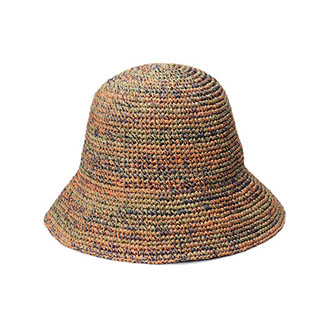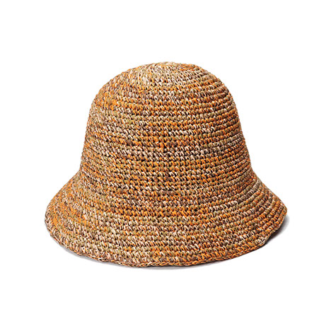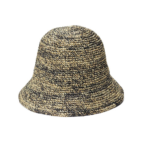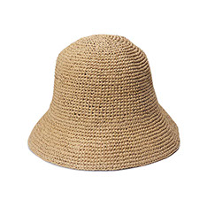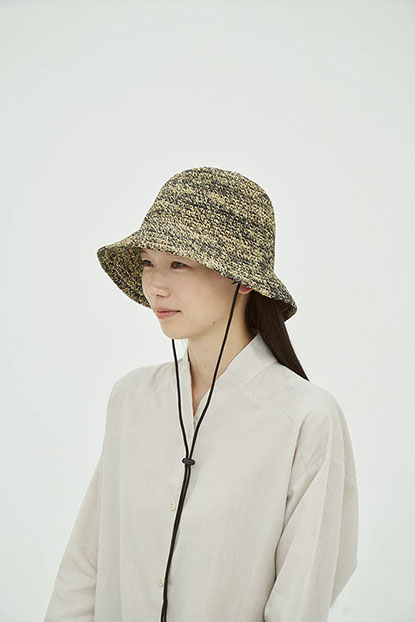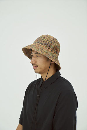 一つひとつ丁寧に手編みされたペーパー素材の細編みハット。約7cmの程よいブリムは自然に収まり、つば先にワイヤーを入れることで自在な形づけが可能。着脱式のアゴ紐を備え、風のある日やアクティブなシーンでも安心です。すべりの内側には速乾性に優れた素材を使用し、サイズ調整用のアジャスターも付属しています。