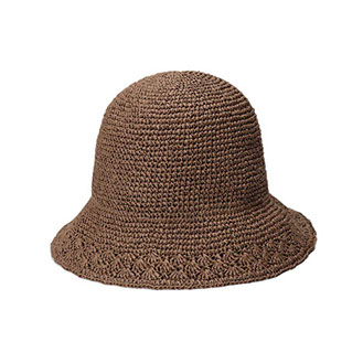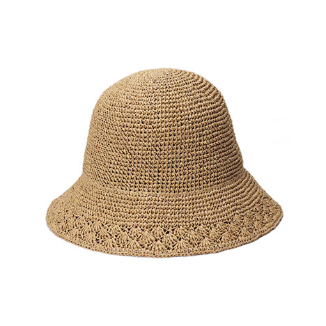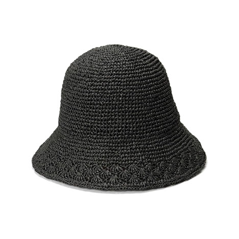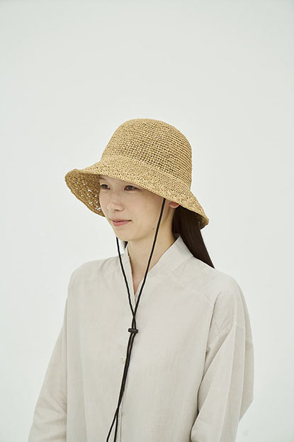 一つひとつ手編みで仕上げたペーパー素材の細編みハット。約7cmの程よい長さのブリムには、さりげなく貝殻編みを施し、上品なアクセントに。つば先にはワイヤーを通し、自由に角度調整が可能です。内側には速乾性のあるすべりとサイズ調整用アジャスターを備え、日差しの強い日でも快適に着用いただけます。