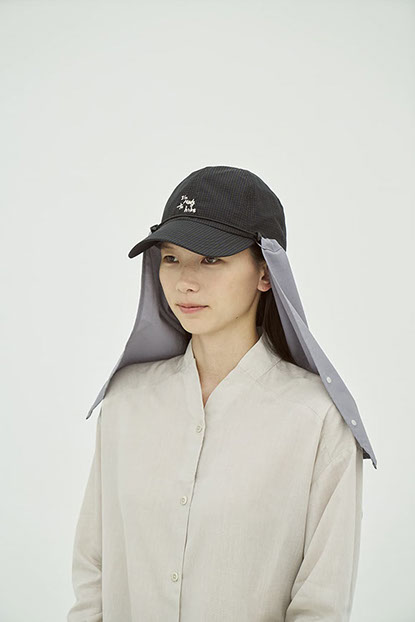風紫外線遮蔽率97%の性能を備えた、機能性サンシェード。通気性・吸汗性・速乾性に優れ、暑い季節の直射日光から首まわりをしっかり守ります。後部のサイズ調整に加え、サイドにはアジャスターを設けており、カーテンのようにシェードの角度を変えることで視界の広さを自在に調整可能。使わないときは折りたたんでポケットに収納できる、携行性にも優れたアイテムです。