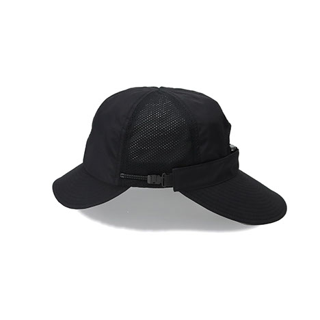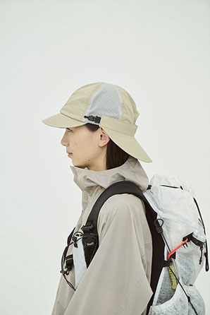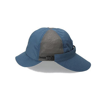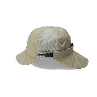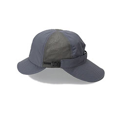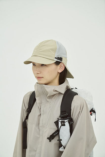 前立てとツバに耐久性の高いコーデュラナイロンを採用し、サイドに通気性と肌触りに優れたメッシュを配置。後部には日差しを防ぐ着脱式バイザーを備え、付け位置や角度を調整可能なアジャスターを搭載。撥水性と防シワ性を併せ持ち、多様な環境下に対応する設計です。内側のリムテープは吸水速乾・放湿冷却・消臭・抗菌防臭機能を備えます。