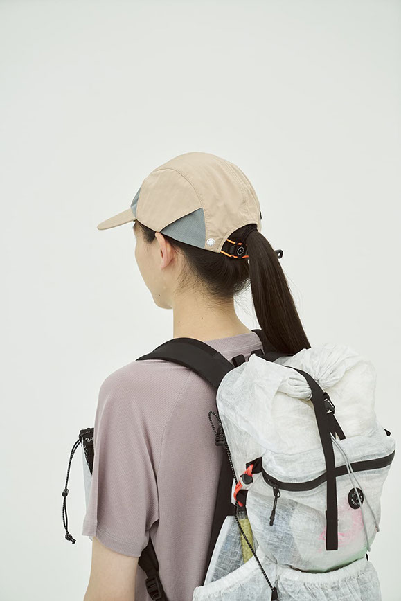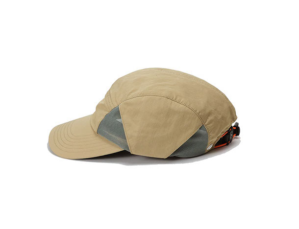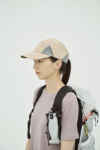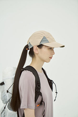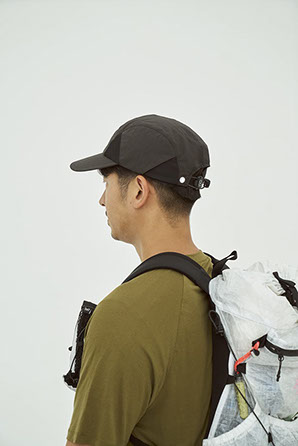 接触冷感と撥水機能を併せ持つリサイクルナイロンを採用。裏地には銀イオンによる抗菌防臭・制菌性を備えたメッシュを用い、軽さと快適性を追求。側面にベンチレーションを配して通気性を確保し、ツバ裏には緑の生地を配して光の反射を軽減します。背面のゴムコードにより動きの多い場面でも安定したフィット感を保ちます。内側のリムテープは吸水速乾・放湿冷却・消臭・抗菌防臭機能を備えます。